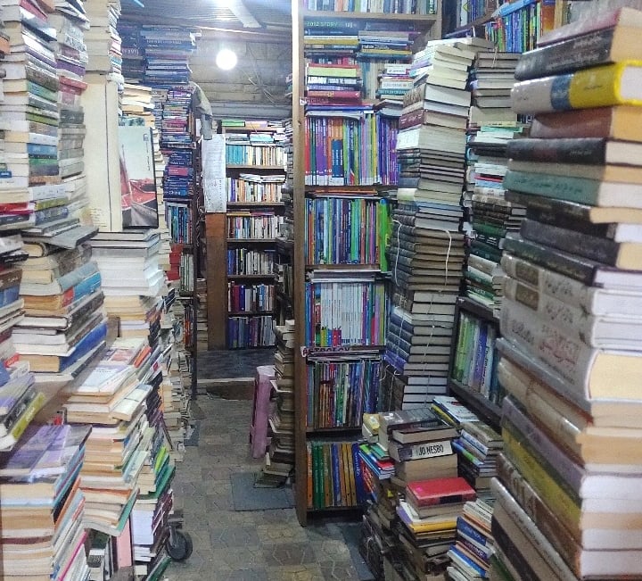 Setecientos metros más al sur, en el número 29 de la misma calle, las expectativas resurgieron. “Al-Maadi Used books, All Languages, All Subjects”. Una mesa de plástico donde un hombre con túnica y un bigote demasiado grande servía té en una taza demasiado pequeña. Detrás, los libros. En horizontal, en vertical, de frente, dados vuelta. Pilas y pilas de piso a techo, que no era techo sino una lona azul que pretendía extender el limitado espacio cubierto, como si los más de ciento cincuenta mil libros se desbordaran solos y hubiera que protegerlos. Un pasillo monorriel se adentraba, giraba en torno a las estanterías y volvía a salir. Los libros estaban separados por categorías y no por idioma. Me detuve en el sector de Egiptología, que se mezclaba con Esoterismo y Ciencias Alternativas. Vi sólo dos clientes que después de recorrer con sus dedos y sus ojos los lomos apilados salieron sin comprar nada, muchas gracias, maa salama.